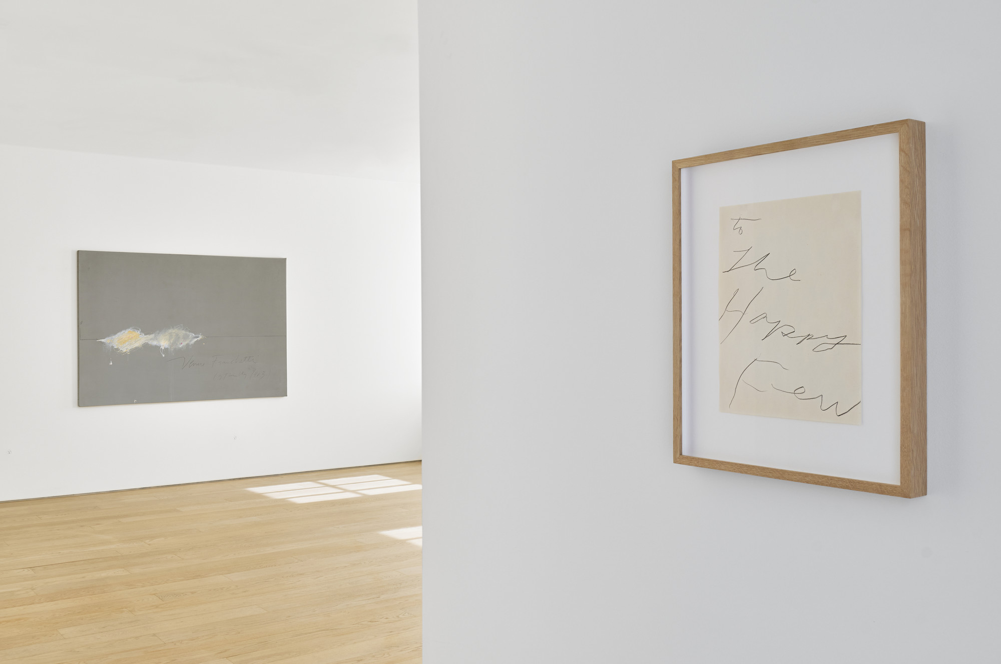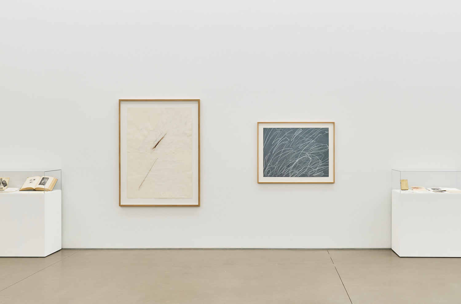 The exhibition traces the genesis of Twombly and Speck’s relationship, beginning with a meeting in Rome around 1970, when Speck, a young collector at the time, approached Twombly in Rome to sign an unsigned work that he had acquired from a Cologne gallery. This interaction marked the beginning of a lifelong friendship. Over the following decades the men remained in close dialogue through Speck’s visits to Twombly’s homes and studios in Italy, attending the artist’s exhibitions, and maintaining an intimate correspondence.