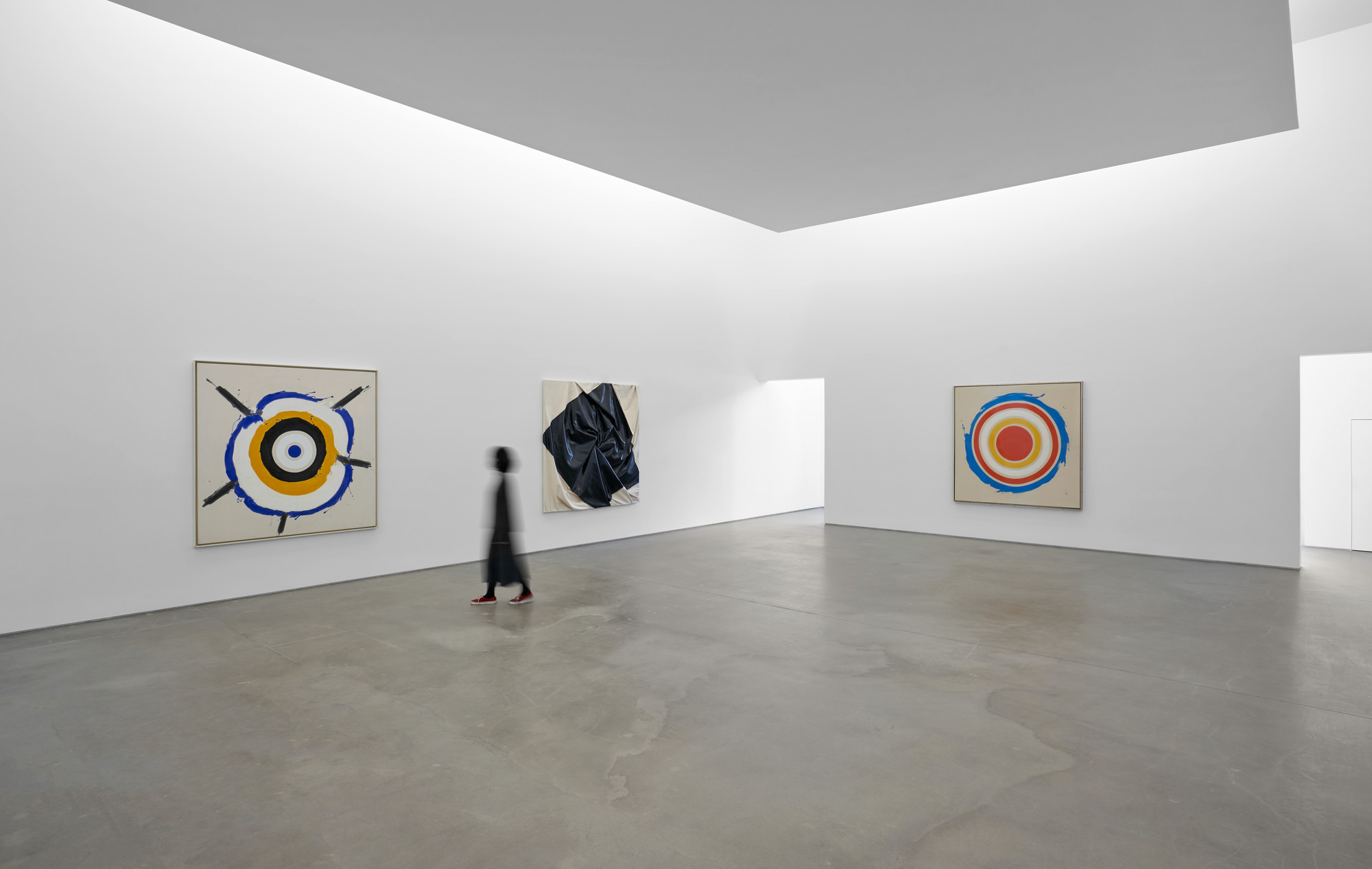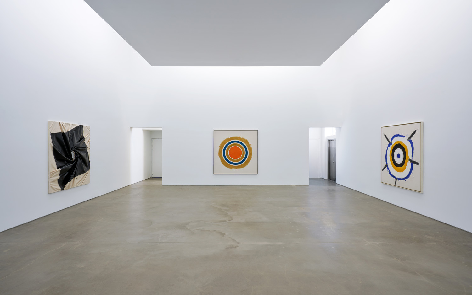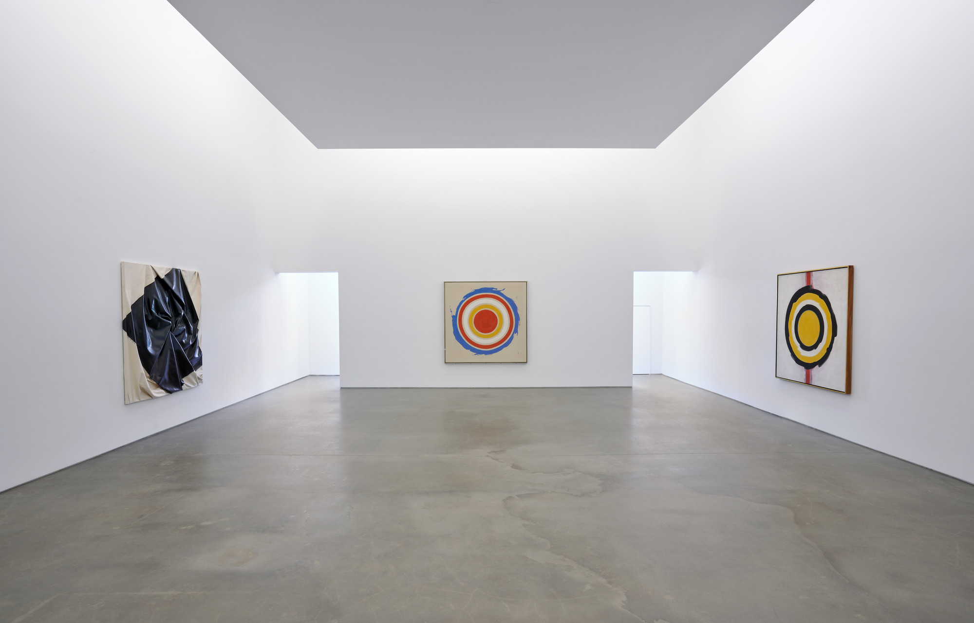 This adventurous pairing shows two artists at the height of their creative powers exploding formal restraint in order to explore the philosophical conditions at the heart of painting. Radiating from the center of unprimed canvases, Noland’s iconic circle paintings fuse the bold palette of Pop Art with the process-based methodology of post-painterly abstraction. These are paired with Steven Parrino’s works from a half-century later. Thrumming with radical energy, these works reflect back on a long century of abstract painting with relentless intelligence.