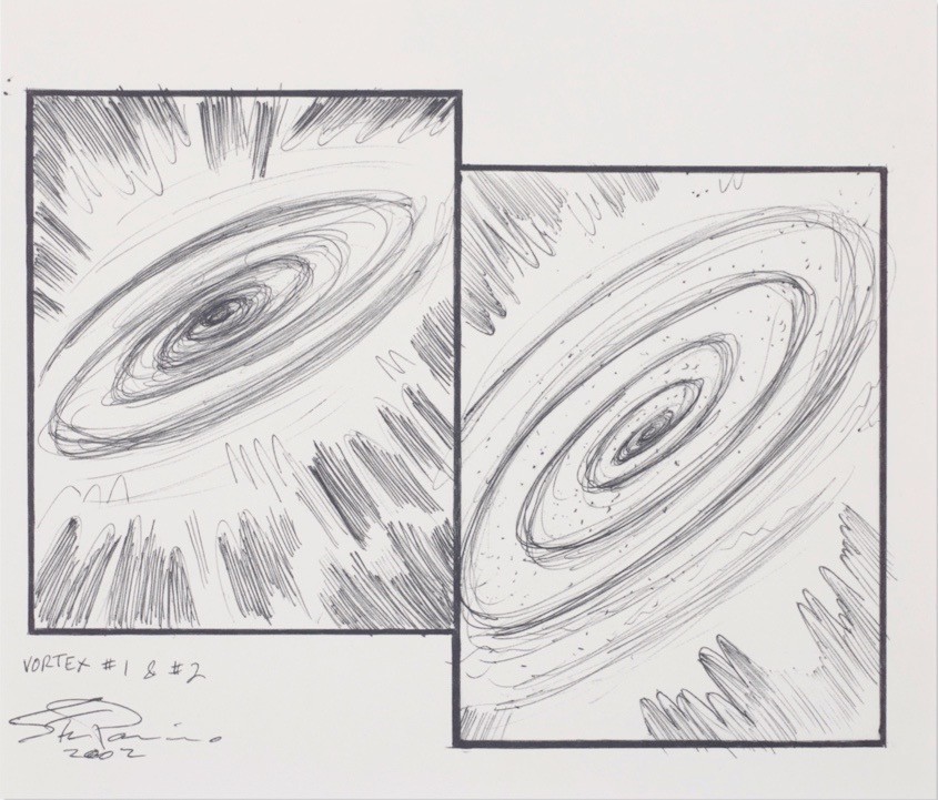 Steven Parrino, Vortex #1 & #2, 2002, Offset lithograph on cardstock, 8 ¼ × 9 ¾ inches (21 × 24.8 cm)